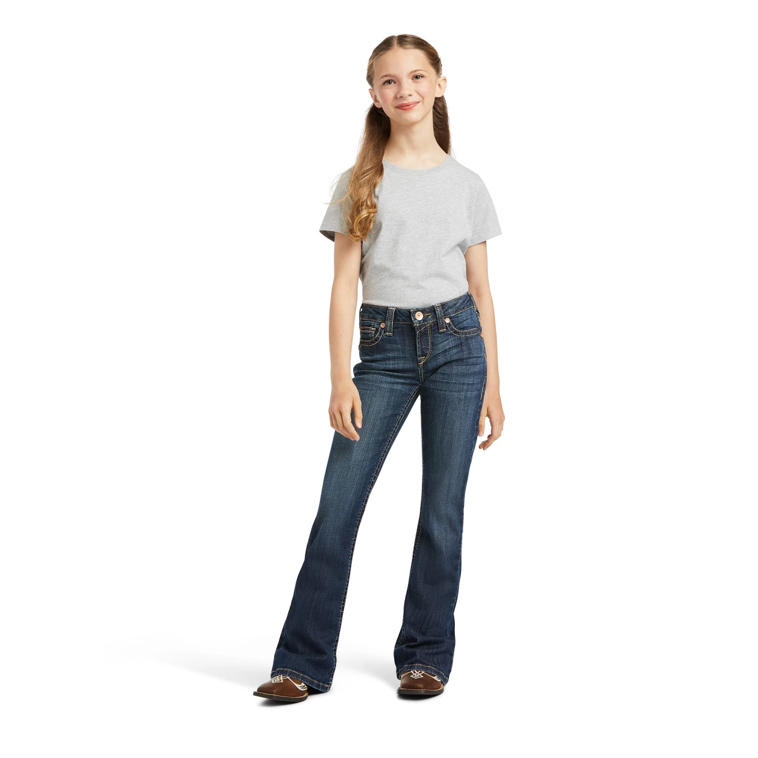 The comfortable jeans you know and love, sized just for her. With a trendy flare leg (just like Mom’s) and cool back-pocket design, they’re made for riding, playing, or just hanging out in.